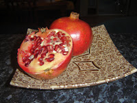 One year my sister decided her New Year's Resolution was to always have fresh flowers in the house. I think this is a great idea. I'm not saying I'm going to do that myself, but I have decided I will buy myself flowers from now on - I love them, but I only get them when I'm doing plays, so why not buy my own? This is a close up of some hydrangeas. I've always been fascinated by pomegranates; they are simply weird fruit. With mysical and classical allusions, they glow like the tempting morsels. They have allured me since I first saw Rossetti's Proserpine, and I bought a couple so we could eat their bitter-sweet seeds with French vanilla ice cream.