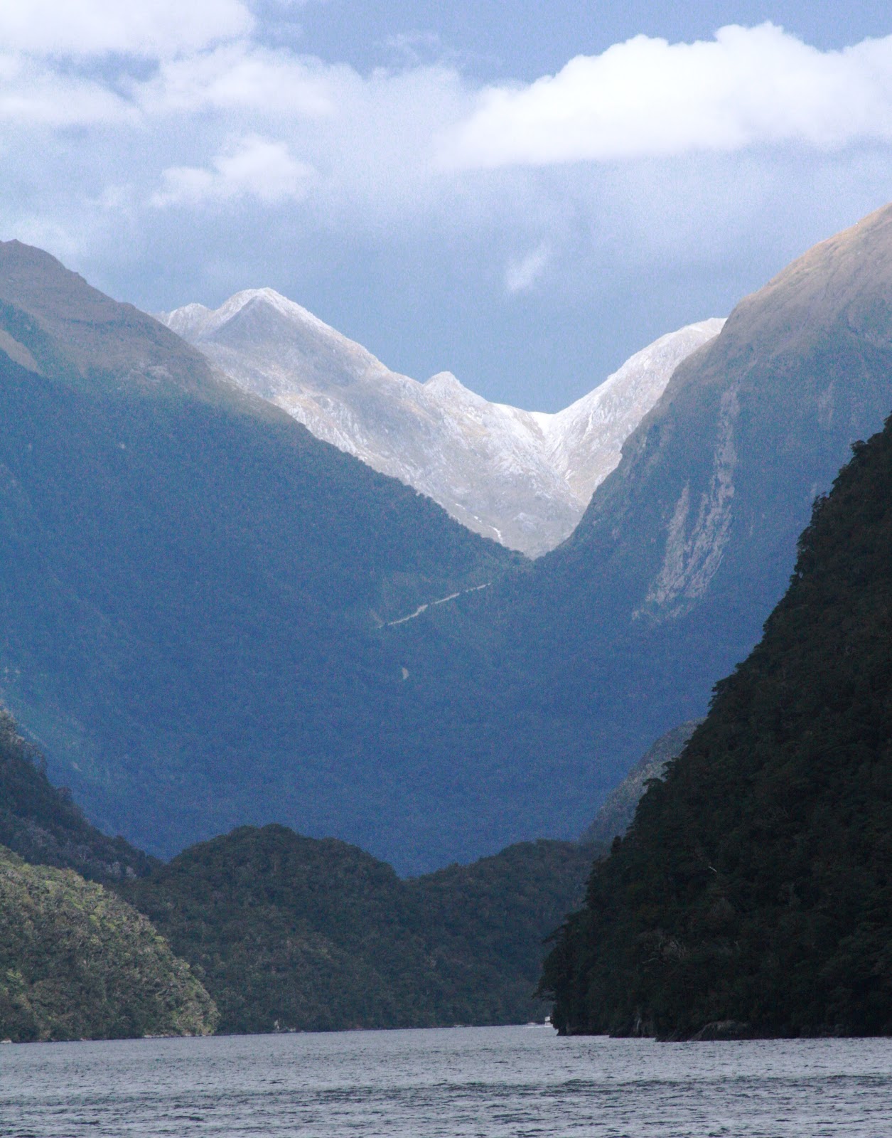 A coach drove us over Wilmot Pass (where we caught our first glimpse of Doubtful Sound) down to Deep Cove. The road was built in the 1960s and, with a gradient of 1:5, it's the steepest road in New Zealand that buses are allowed to navigate.