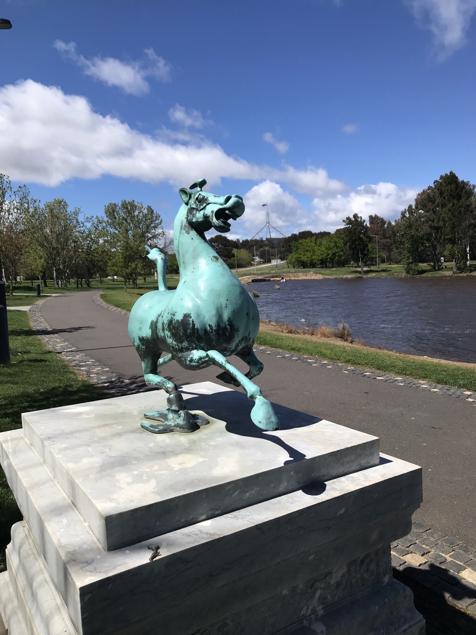 Across the choppy waters of the lake, the National Museum sits on Acton Peninsular. Design Diva told me that it was formerly the hospital for Canberra, which is not ideally situated as there was limited space for growth and only one way in and out. On 13 July 1997, the plans to demolish the old buildings went horribly wrong. Over 100,000 people attended the implosion from the other side of the lake; one of the largest crowds in the history of Canberra. Unfortunately, large pieces of debris reached across the lake injuring nine people and instantly killing Katie Bender, a twelve-year-old girl. The main building did not fully disintegrate and was manually demolished afterwards. There is now a memorial on the site to Katie Bender.