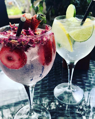 Our walk took us to Longstocking Brewery where we had gin cocktails and oysters. The gin bar featured goblets of gin - I chose the Gunpowder Irish Gin ('oriental botanicals, gunpowder tea and Irish curiosity') with tonic and lots of lemon and lime, and Him Outdoors had the North of Eden Connoisseur Gin (citrus, berry and floral notes) served with strawberries and miniature rose petals.