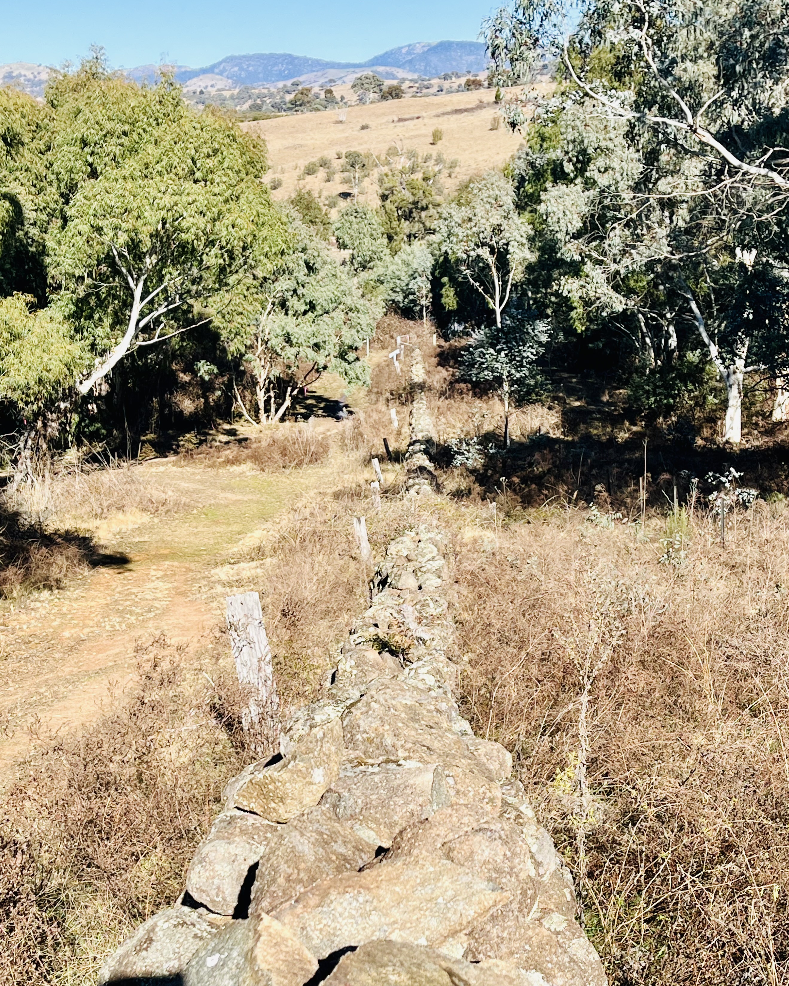 The dry stone wall was built between 1867 and 1875 to separate the 'Lanyon' and 'Yarralumla' Stations. I do love a dry stone wall, and there aren't so many in this country, so I was sure to admire this one. A sign explains that it was built 'in the typical style brought over by British settlers. However, the rabbit-proof fencing at variouis points along the wall - timber posts straining wire and wire netting - is uniquely Australian.